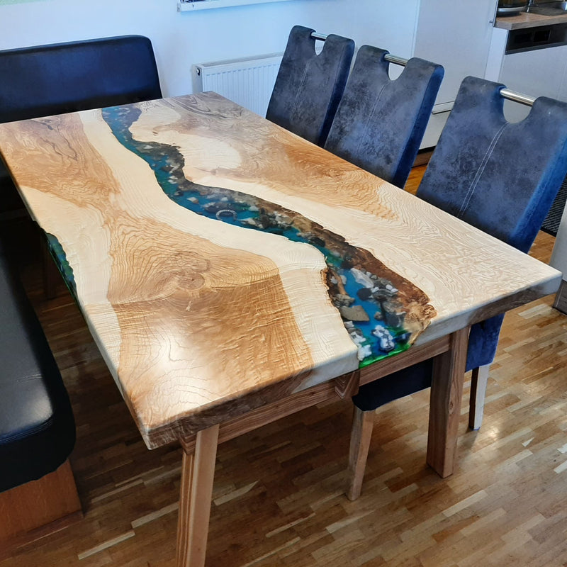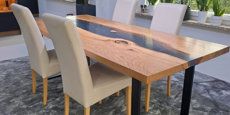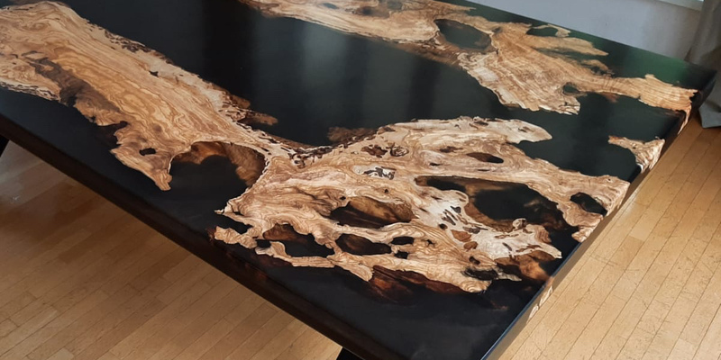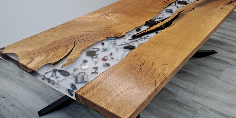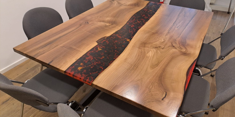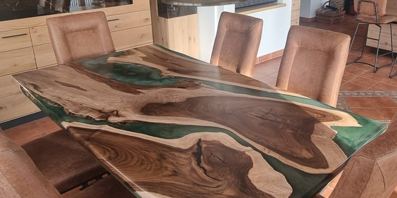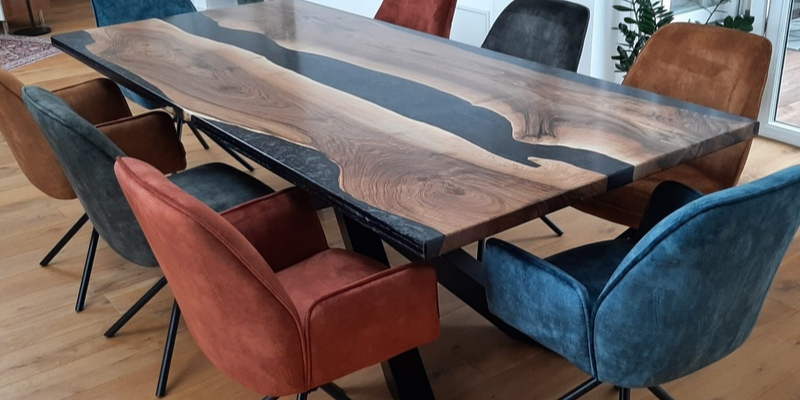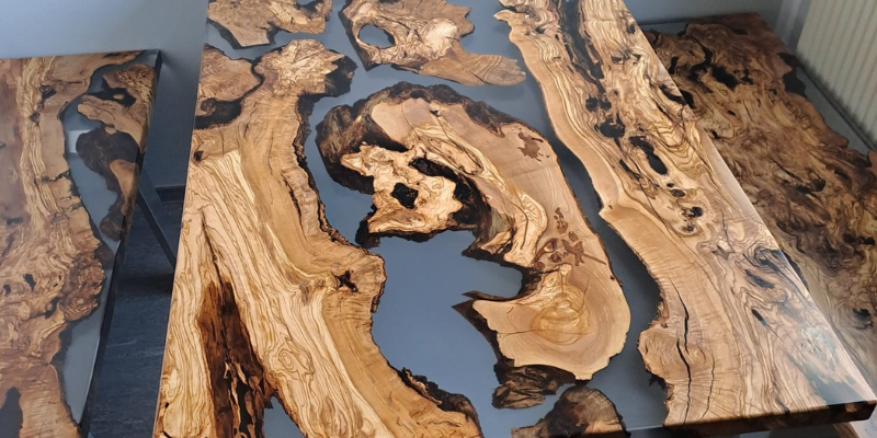 verschiedene Holzarten, Formen und die Vielfalt von Epoxidharz.
